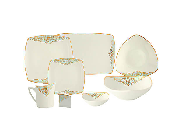 این سرویس چینی در دو طیف فیروزه ای و متداخل تولید شده است.