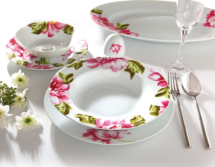 ظروف چینی ایتالیا اف با زیبایی کلاسیک و طراحی موزون خود، در اولین نگاه نظر هر بیننده ای را جلب می نماید. قطعات فوق العاده ظریف این پیکره به نحوی طراحی شده اند که از هر جهت پاسخگوی نیازهای مصرف کنندگان باشند. طرح نشات گرفته از خطوط منحنی ملایم در کنار کیفیت بسیار بالای بدنه چینی این ظروف، تکمیل کننده جذابیت ایتالیا اف می باشد.