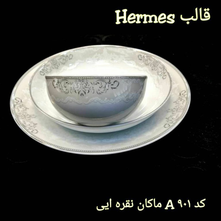 سرویس چینی پردیس طرح ماکان نقره ای قالب هرمس 6نفره