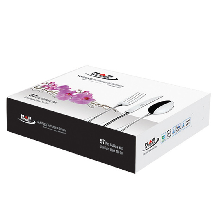 سرویس 57 پارچه ناب استیل مدل فلورانس ساده شامل: 12 عدد قاشق غذا خوری 12 عدد چنگال غذا خوری 6 عدد قاشق چای خوری 6 عدد قاشق شربت خوری 6 عدد قاشق مربا خوری 6 عدد کارد میوه خوری 6 عدد چنگال میوه خوری 2 عدد کفگیر بزرگ 1 عدد ملاقه سوپ