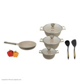 از ضروریترین لوازمی که در آشپزخانه استفاده میشود، یک سرویس پخت استاندارد و سالم است. استفاده از قابلمه و تابههایی که مطابق با استانداردهای لازم تولید شدهاند، کمک میکند غذایی سالم برای خانواده آماده کنید. سرویس پختوپز9 پارچهی «کاندید» مدل « Orbit» یکی از باکیفیتترین محصولاتی است که در بازار به چشم میخورد. این ست زیبا با رنگبندیهای متنوعی که دارد، فضای آشپزخانه را جذاب و متفاوت میسازد. سرویس پخت کاندید شامل سه قابلمه با سایزهای 20 و 16، 24 و یک تابه ابزار آشپزی است. بدنهی این سرویس از آلومینیوم انتخاب شده و روکش داخلی آن سرامیکی است. کفی ظروف ضدخش طراحی شده است که در صورت استفاده روی انواع اجاق گاز، آسیبی متوجه آنها نخواهد بود. درپوشهای این ظروف از شیشه بوده و دارای یک رینگ استیل هستند که مانع از ایجاد خش روی لبههای ظروف میشود.
