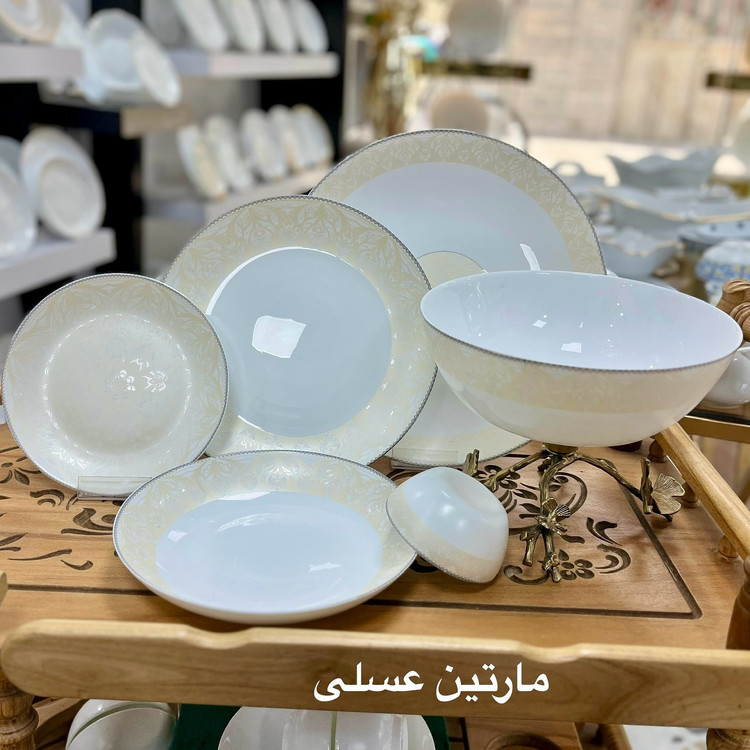 تولید و اماده ارسال سرویس فره ۲۶ پارچه مارتین عسلی کف گل قالب گرد کلاسیک برند باواریا تحت لیسانس فرانسه قابل استفاده در ماشین ظرفشویی و ماکرو