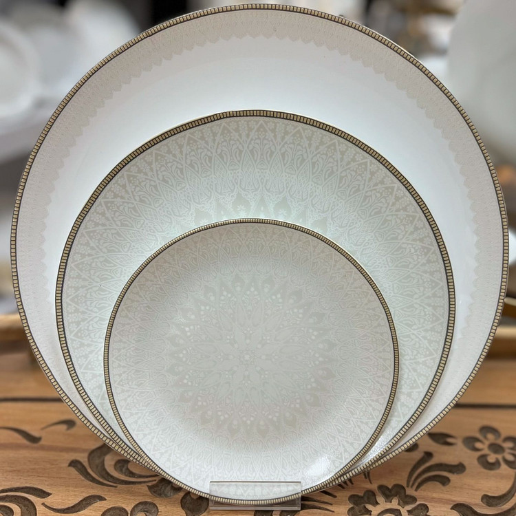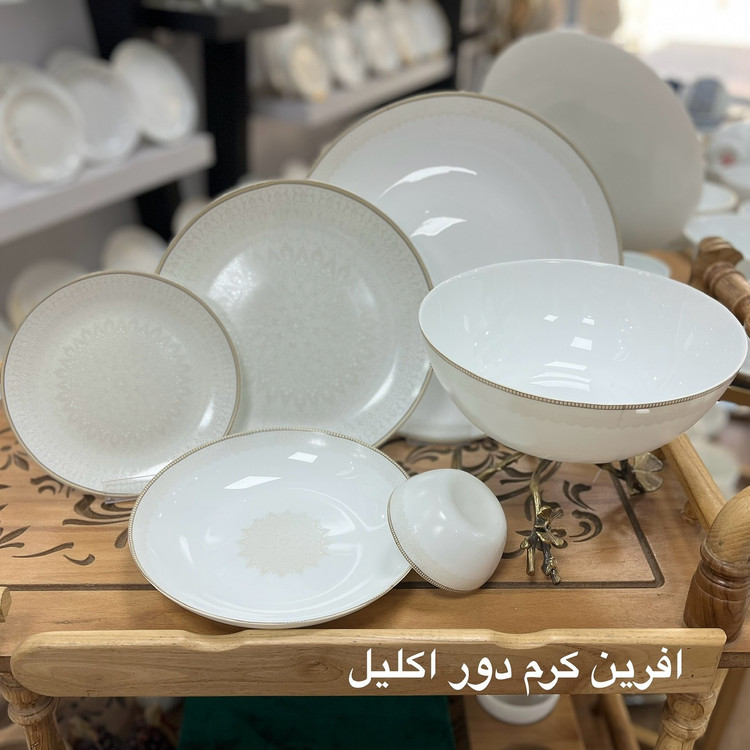 سرویس ۲۶ پارچه افرین کرم دور اکلیل قالب گرد کلاسیک برند باواریا تحت لیسانس فرانسه قابل استفاده در ماشین ظرفشویی و ماکرو 26پارچه شامل 6پلو 6خورش 6پیش دستی 6پیاله 1کاسه سالاد 1 دیس
