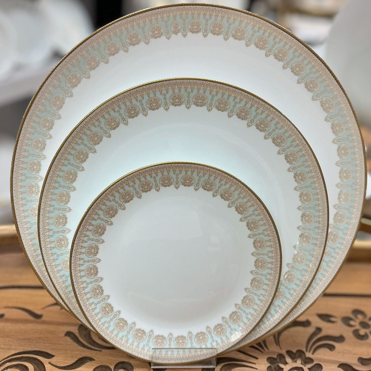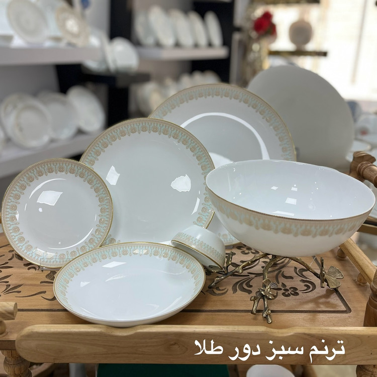 سرویس ۲۶ پارچه ترنم سبز دور طلا قالب گرد کلاسیک برند باواریا تحت لیسانس فرانسه 26پارچه شامل 6پلو 6خورش 6پیش دستی 6پیاله 1کاسه سالاد 1 دیس