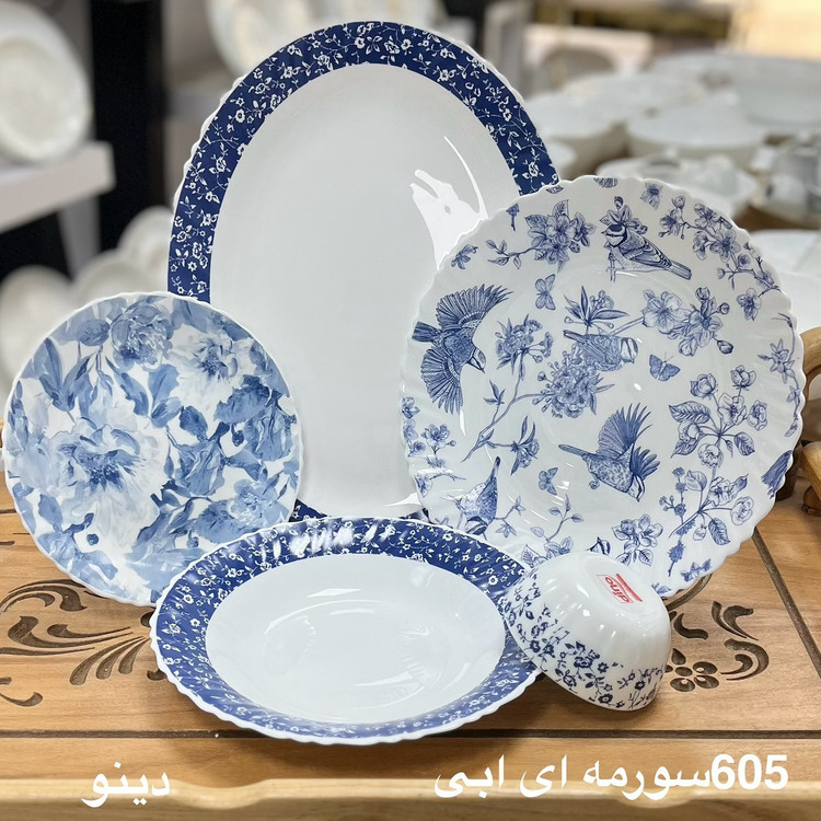 طرح جدید عالی سرویس فره ۲۶پارچه قالب گرد پیچ برند دینو مقصود 25پارچه شامل 6پلو 6خورش 6پیش دستی 6پیاله 1دیس ۱کاسه سالاد