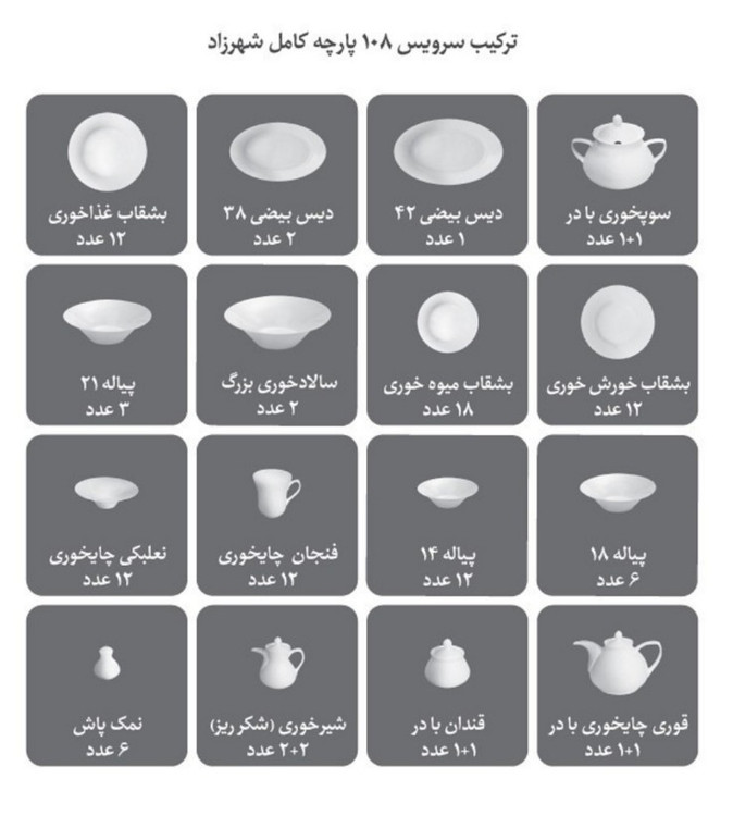 چینی رویال پلاتینی زرین 108پارچه شهرزاد یک