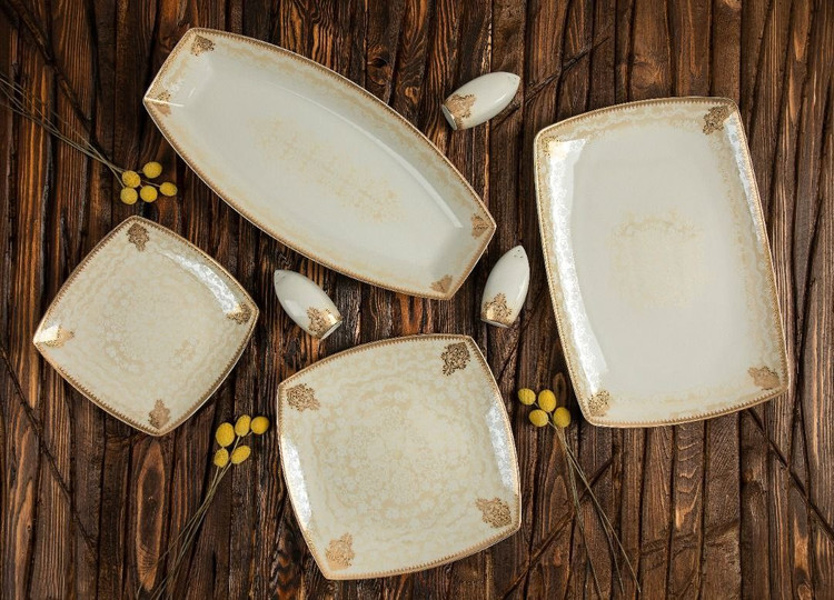 جدیدترین محصول شرکت پردیس کاشان سرویس 36پارچه نیوبن طرح کاملیا طلایی