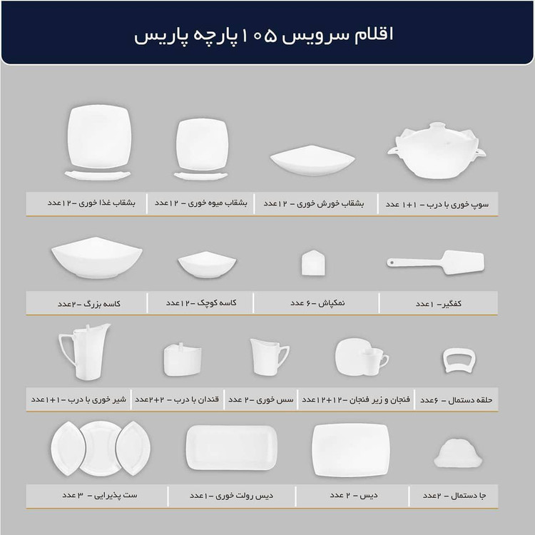 سرویس چینی استخوانی پردیس ۱۸نفره ۱۳۲پارچه نیو بن
