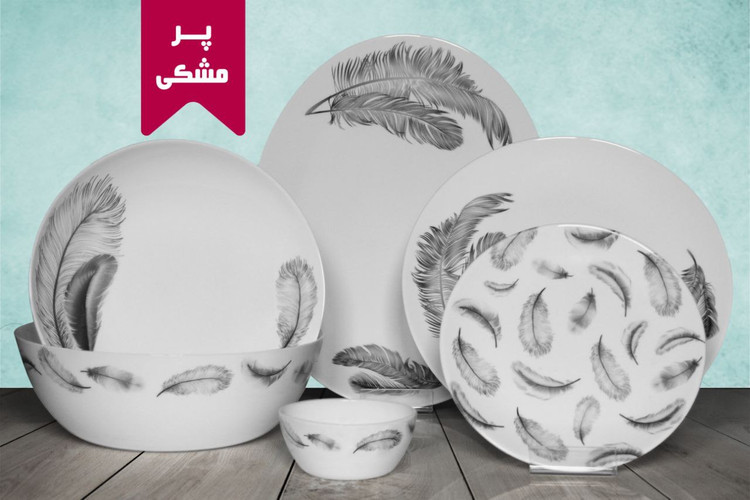 سرویس آرکوپال طرح پر مشکی گرد 26پارچه