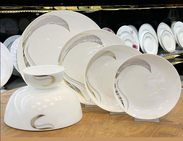 بشقاب غذاخوری 6 عدد بشقاب خورش خوری 6 عدد پیش دستی میوه خوری 6 عدد پیاله ماست 6 عدد دیس برنج 1 عدد کاسه سالاد 1 عدد
