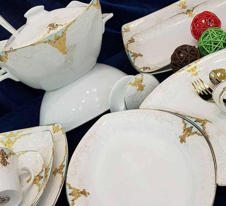 سرویس چینی پردیس 12نفره طرح ستایش فیروزه ای 466i