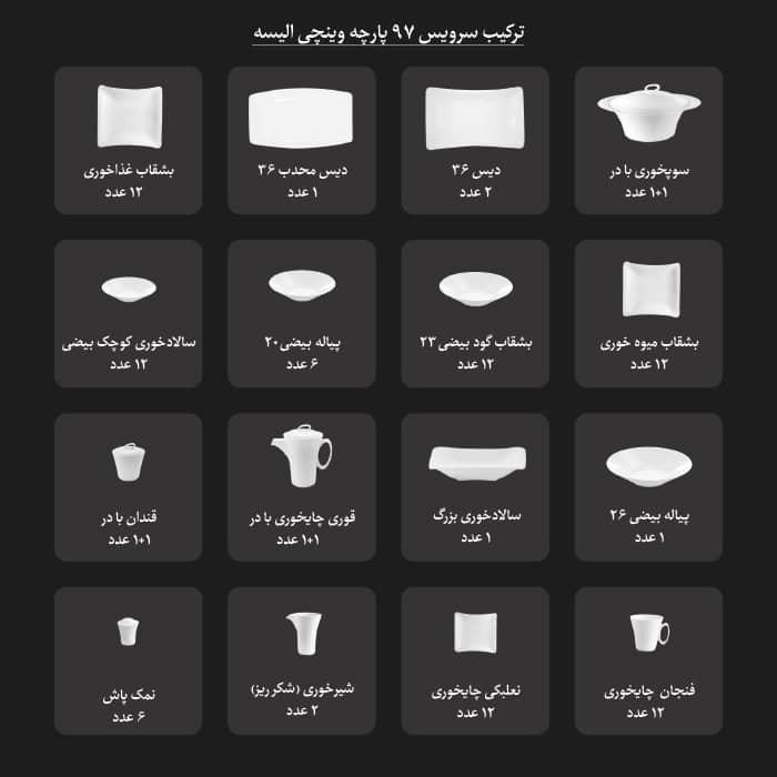 چینی حریر وینچی الیسه زرین ۹۷ پارچه درجه یک
