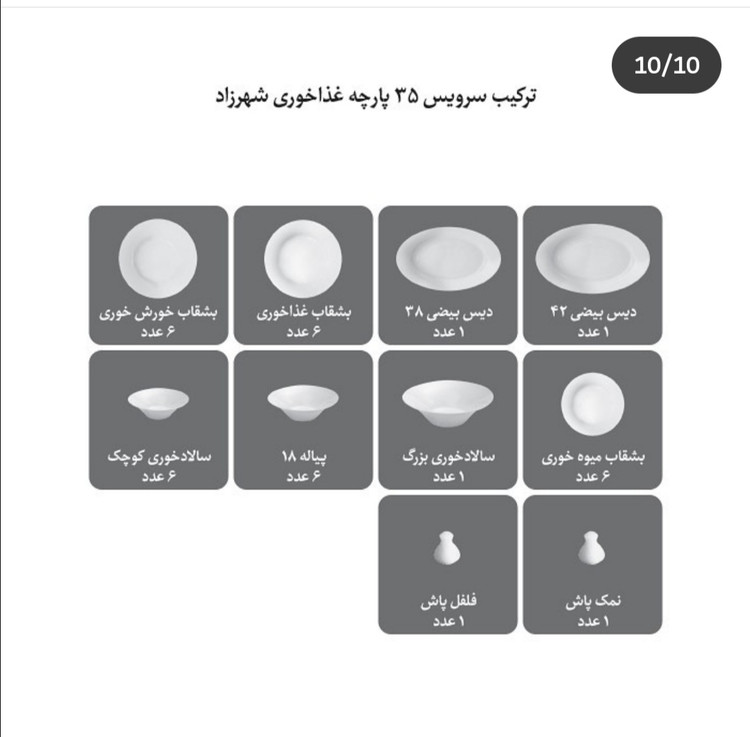 چینی زرین طرح هانیکام شهرزاد یک 6نفره 35پارچه