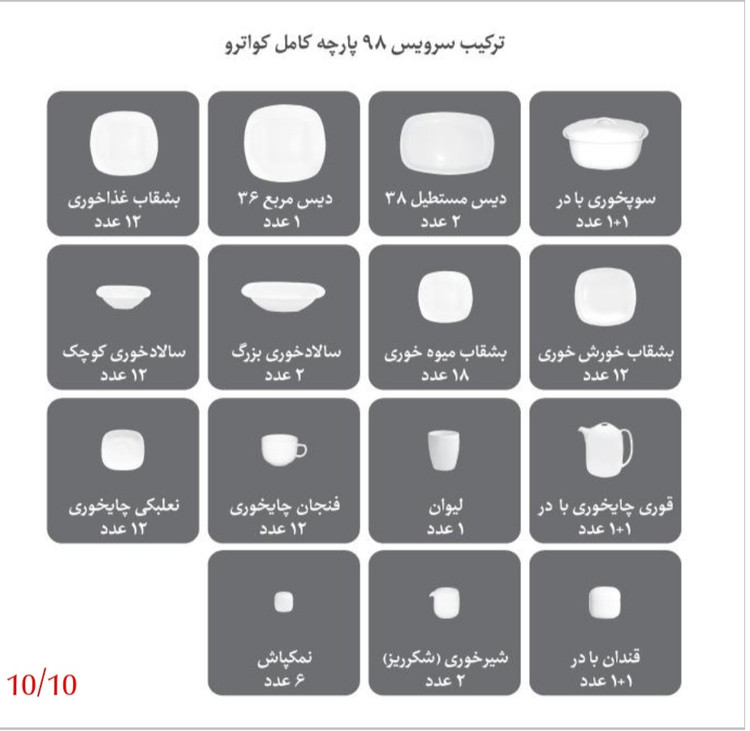 سرویس چینی زرین طرح رسپینا 12نفره 98پارچه عالی کواترو