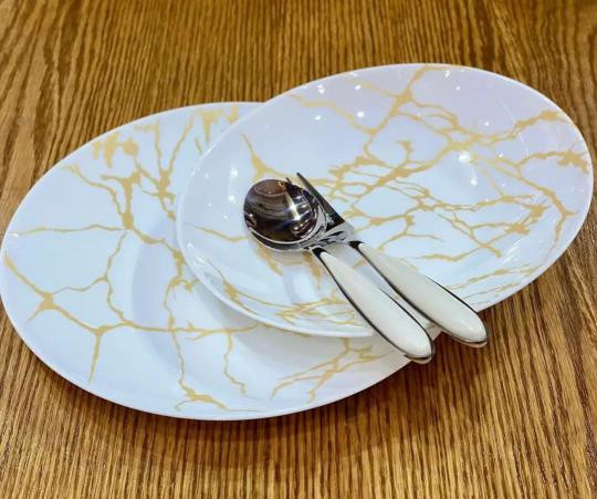 شامل 6تاپلو 6تا خورش 6تا پیش دستی 6تا پیاله 1 کاسه سالاد 1دیس 2نمکپاش