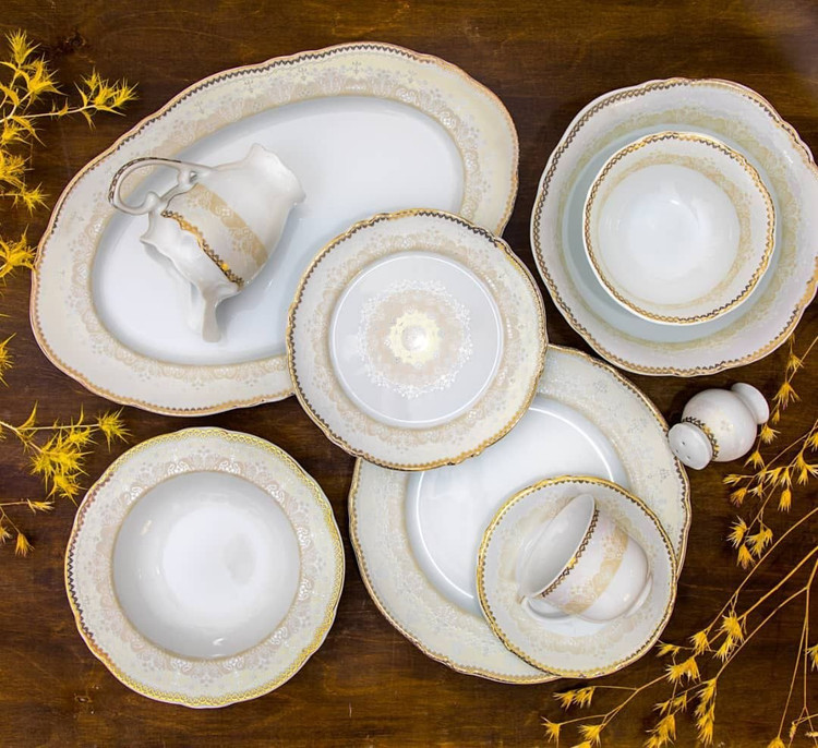 سرویس چینی پردیس از جمله سرویس های غذاخوری بسیار محبوب قالب الگانس است. این قالب الهام گرفته از سبک طراحی کلاسیک انگلیسی می باشد . نوار طلایی حاشیه و سایز بزرگ ظروف تداعی کننده ی سرویس های چینی سلطنتی می باشد و بهترین انتخاب برای میزبانی های رسمی شما می باشد . قالب الگانس به خاطر طراحی نوستالژیک حس زیبا و خاطره انگیز گذشته را برایتان تداعی میکند.