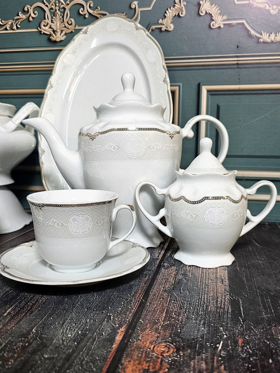 سرویس چینی پردیس از جمله سرویس های غذاخوری بسیار محبوب قالب الگانس است. این قالب الهام گرفته از سبک طراحی کلاسیک انگلیسی می باشد . نوار طلایی حاشیه و سایز بزرگ ظروف تداعی کننده ی سرویس های چینی سلطنتی می باشد و بهترین انتخاب برای میزبانی های رسمی شما می باشد . قالب الگانس به خاطر طراحی نوستالژیک حس زیبا و خاطره انگیز گذشته را برایتان تداعی میکند.