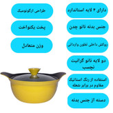 متاسفانه این کالا در حال حاضر موجود نیست. میتوانید از طریق لیست بالای صفحه، از محصولات مشابه این کالا دیدن نمایید.تولید شده با جدید ترین تکنولوژی روز دنیا و استفاده از با کیفیت ترین مواد اولیه میباشد . طول عمر بالا و زیبایی منحصر به فرد این محصول دلیلی برای انتخاب افراد با سلیقه می باشد. ظروفی با 4 لایه استاندارد شامل : روکش بیرونی رنگ استاتیک مقاوم در برابر شعله و تغییر رنگ ، نانو چدن مقاوم ، نانو گرانیت ضد خط و خش ، نانو گرانیت نچسب می باشد . بهترین انتخاب برای جهیزیه و هدیه و همچنین برای استفاده روزمره است . همچنین قابل ذکر می باشد سرویس شامل 4 قابلمه در سایز های 32 ، 28 ، 24 ، 20 و چهار تابه در سایز های 32 ، 28 ، 24 ، 20 می باشد