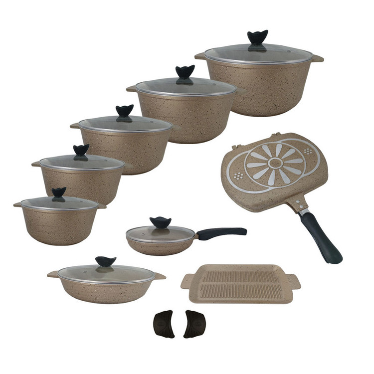 سرویس پخت وپز (قابلمه) گرانیت، محصولی است جدید از کمپانی پیلو ،با جدیدترین خطوط تولیدی مجهز به تکنولوژی روز (نانو) با قابلیت ذخیره انرژی تا 30% عرضه شده است. جنس بدنه کلیه سرویس ها از 5 لایه ساخته شده و تکنولوژی بکاررفته در قسمت تحتانی این محصولات را از شعله پخش کن بی نیاز میکند. محصولات پیلو در بروزترین خطوط تولیدی در کوره های خاص رنگ شده وتا 350 درجه در برابر حرارت مستقیم مقاومت میکنند. این محصول جهت سازگاری با سلایق مختلف رنگ متنوع عرضه شده است.جنس دستگیره این سرویس با جنس بکاررفته در بدنه (چدن) همسان بوده ودرنتیجه هرگز دستگیره ها آسیب نمیبینند. ادغام جنس دستگیره با بدنه علاوه بر محافظت آن دربرابر حرارت مستقیم موجب ظهور طرحی زیبا و منحصر بفرد شده است.دسته ماهی تابه ها نیز از این قاعده مستثنی نبوده وعلاوه بر موارد فوق قابلیت جداشدن را نیز دارد. مواد تشکیل دهنده لایه درونی با تکنولوژی نانو گرانیت با فرمول گیاهی ساخته شده و ترکیبات آن غیر قابل ترکیب با مواد غذایی بوده و این محصول را جهت پخت و پز سالمتر ارائه میکند. درب بکاررفته در محصولات فوق با استاندارد ترین شکل ممکن ساخته شده تا بهترین کارایی را ارائه نماید و جنس بکار رفته درآن شامل استیل با قابلیت ضد زنگ و شیشه محدب آبدیده با قابلیت تحمل حرارت بالا ساخته شده است.