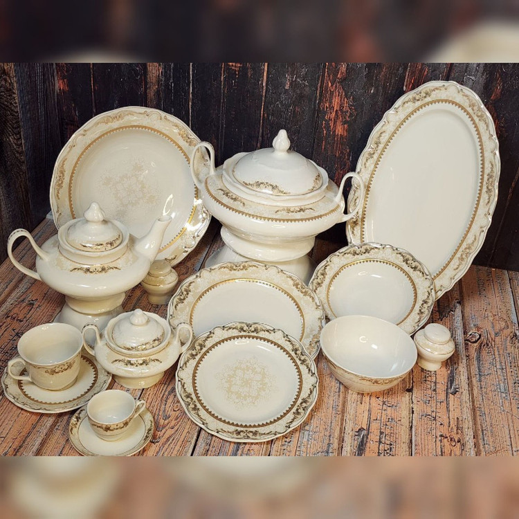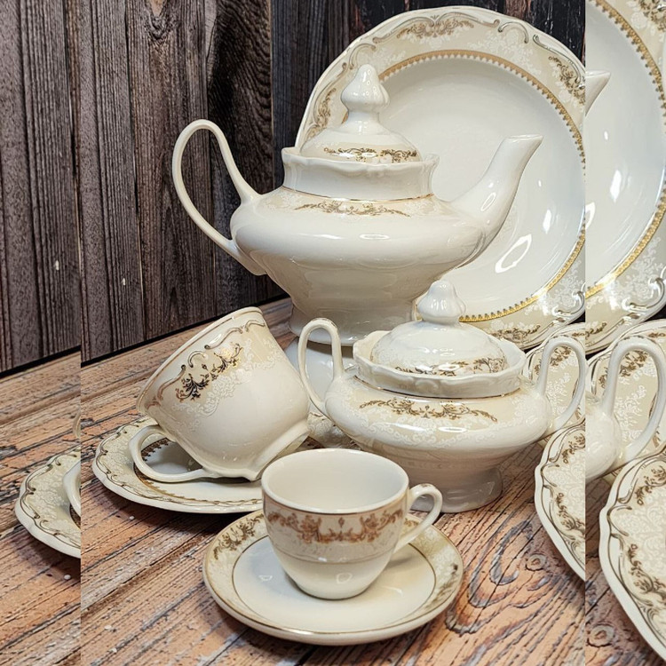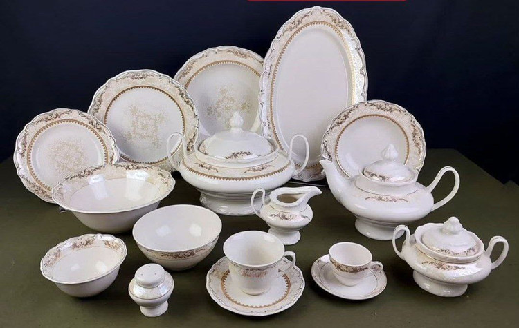 سرویس چینی پردیس طرح نلین ۹۸ پارچه بن چاینا استخوانی ۱۲نفره