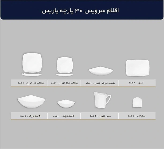 کاربرد گسترده: سرویس چینی پردیس قالب پاریس شش نفره برای استفاده روزمره و مهمانیهای رسمی مناسب است.