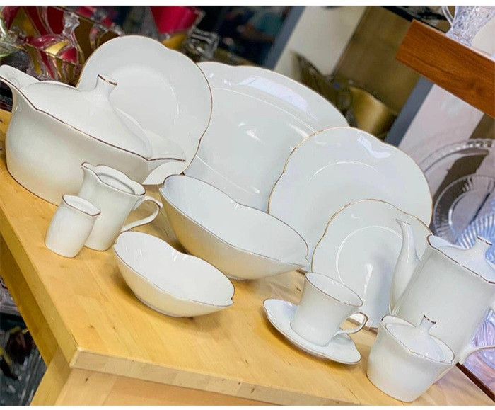 ترکیب سرویس 104 پارچه اسپرینگ پردیس طرح سفید لب طلا :
