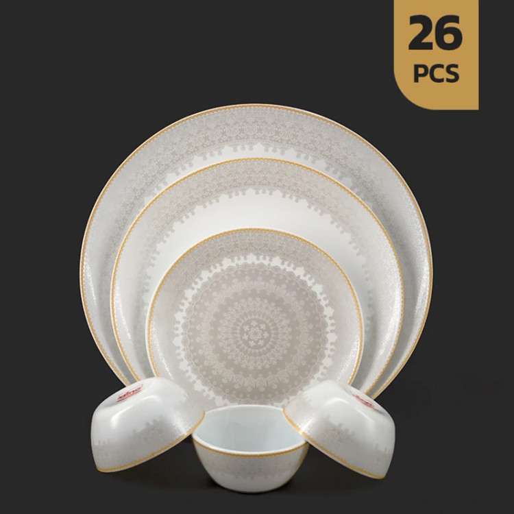 این سرویس شامل 26 پارچه است که برای سرو غذا برای 6 نفر طراحی شده و نیازهای مختلف پذیرایی شما را برآورده میکند: