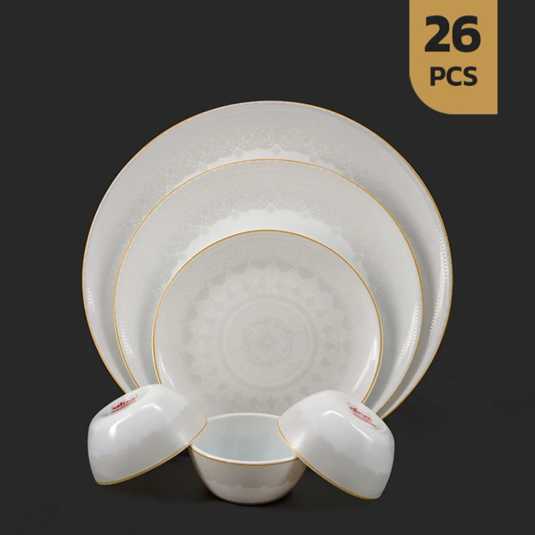 این سرویس شامل 26 پارچه است که برای سرو غذا برای 6 نفر طراحی شده و نیازهای مختلف پذیرایی شما را برآورده میکند: