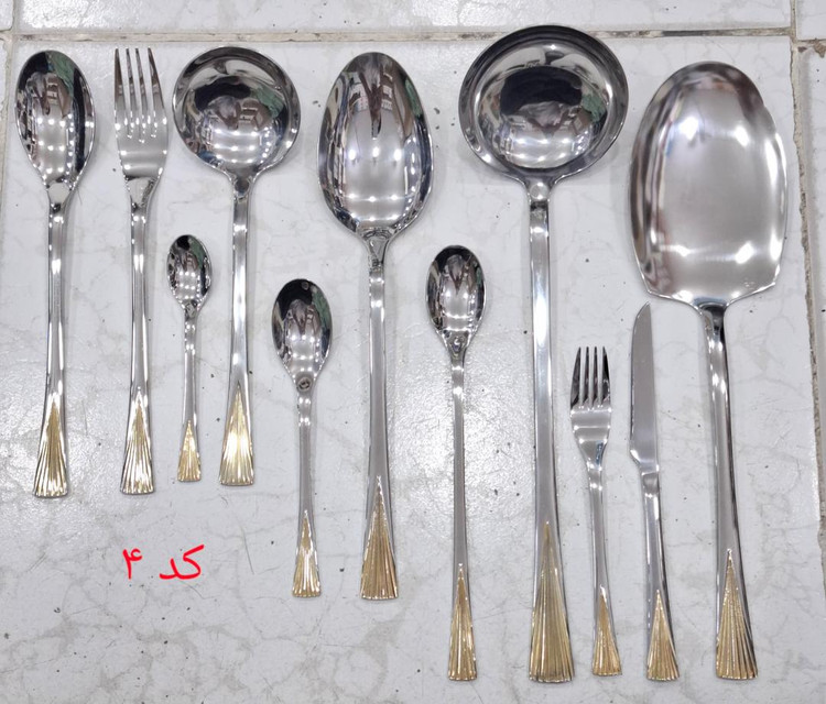 سرویس قاشق چنگال یونیک نقره طلایی ۲۴نفره ۱۲۰پارچه کد۴