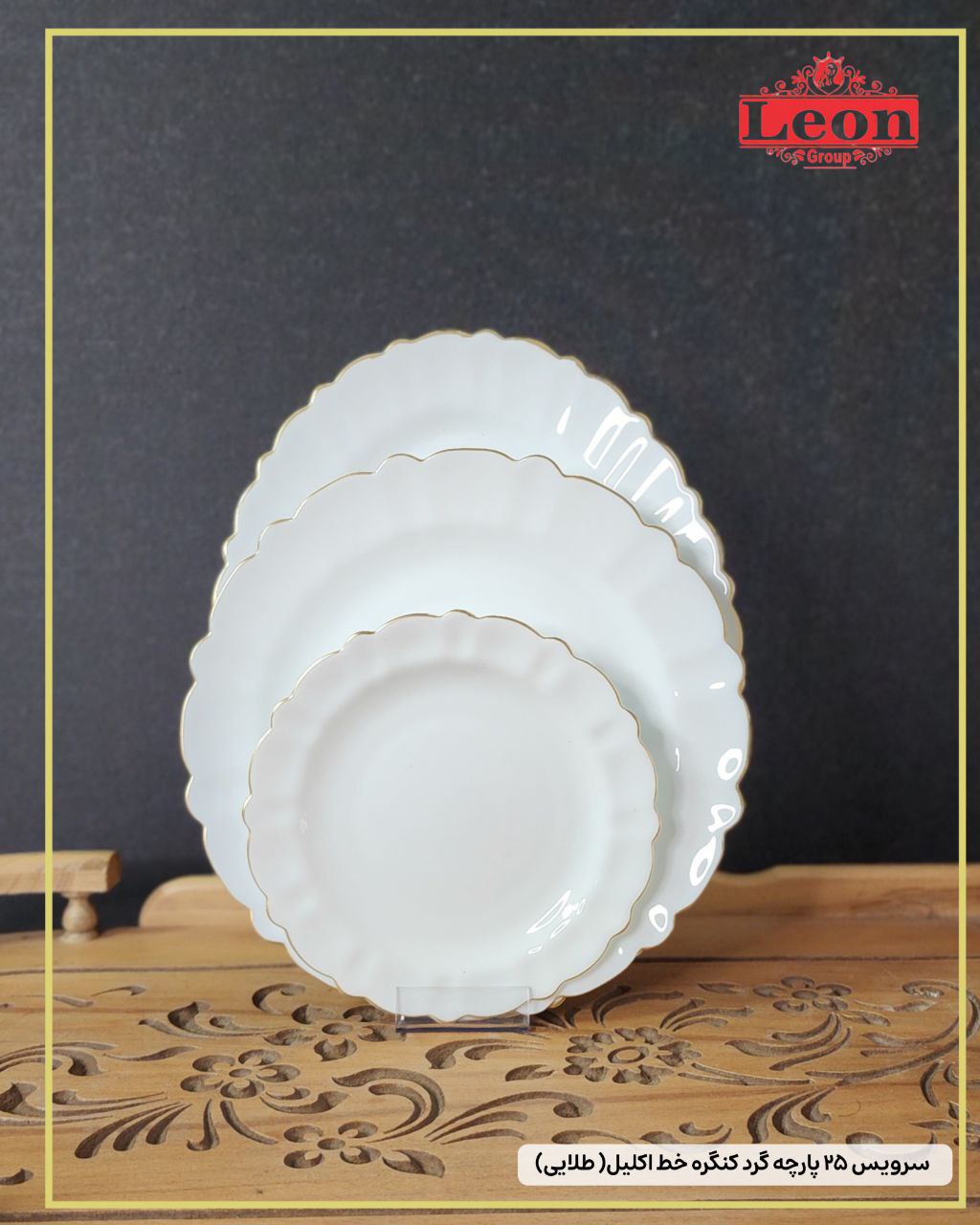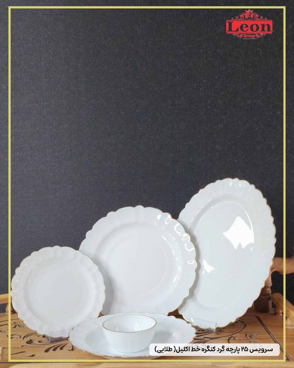 سرویس۲۵پارچه گرد کنگره خط اکلیل (طلایی) برند لئون 🔥