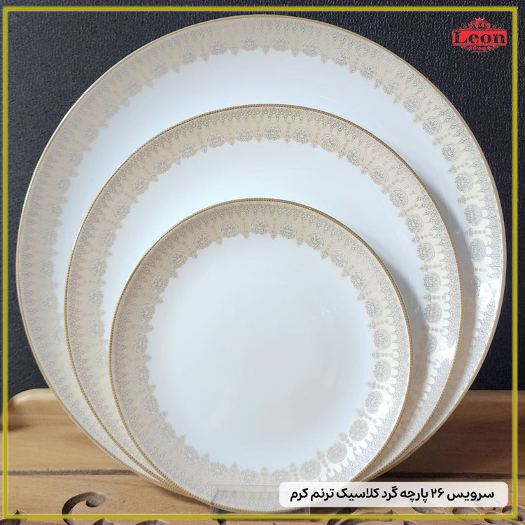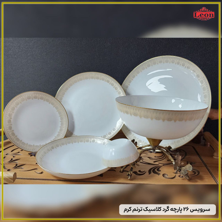 سرویس ۲۶پارچه گرد کلاسیک ترنم کرم برند لئون 🔥