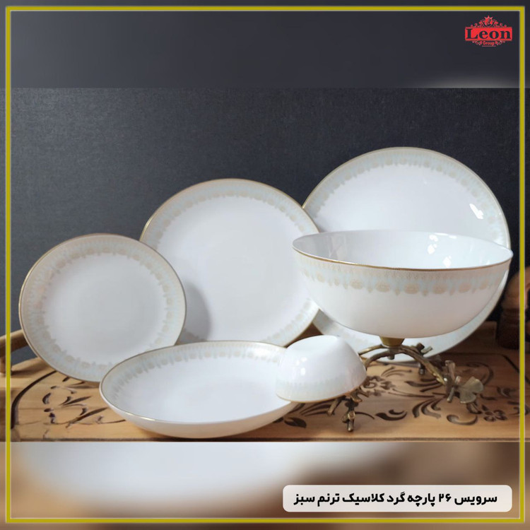 سرویس ۲۶پارچه گرد کلاسیک ترنم سبز برند لئون 🔥
