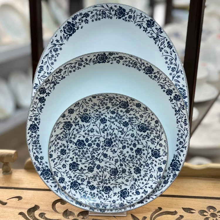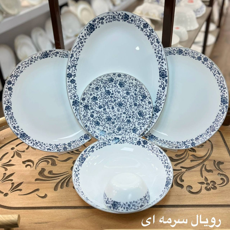 سرویس ۲۶ پارچه گرد کلاسیک مقصود طرح رویال سرمه ای برند لئون
