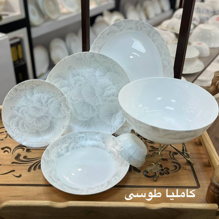 سرویس ۲۶ پارچه گرد کلاسیک مقصود طرح کاملیا طوسی برند لئون
