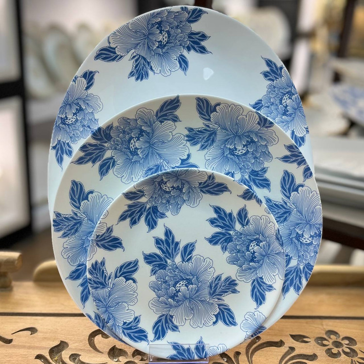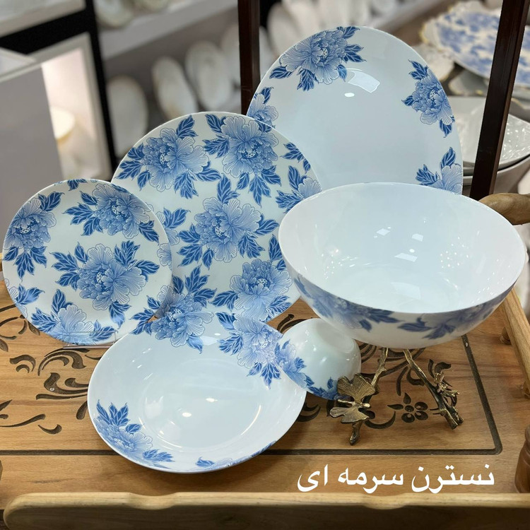 سرویس ۲۶ پارچه گرد کلاسیک مقصود طرح نسترن سرمه ای برند لئون