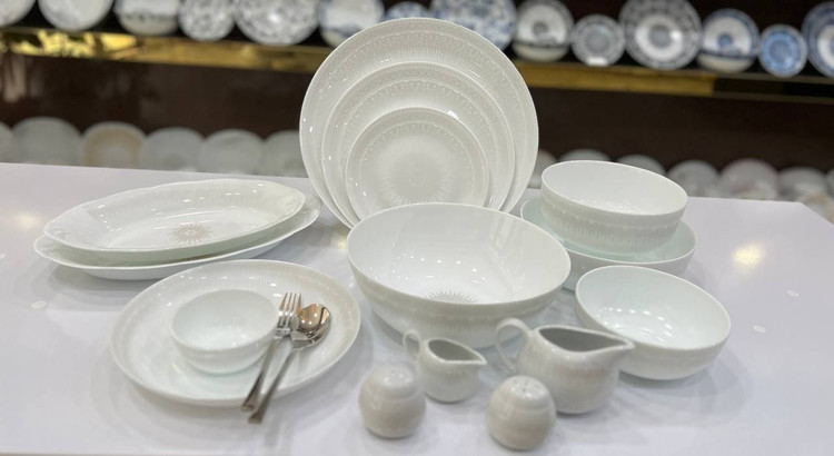 سرویس۲۶ پارچه گرد کلاسیک برند دینو طرح اختصاصی ریجینا خاکستری🔥