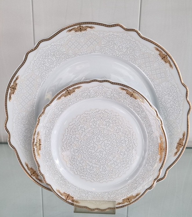 🔵سرویس 30 پارچه چینی پردیس قالب الگانس طرح البرز طلایی درجه یک6نفره