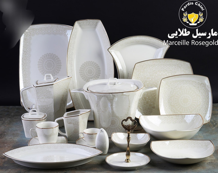 سرویس چینی پردیس ۹۶ پارچه ۱۲ نفره طرح مارسی طلا ایزابل