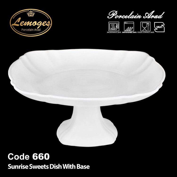 🔵دیس مربع سانرایز پایه دار سفید ساده کارینا کارتن8عددی