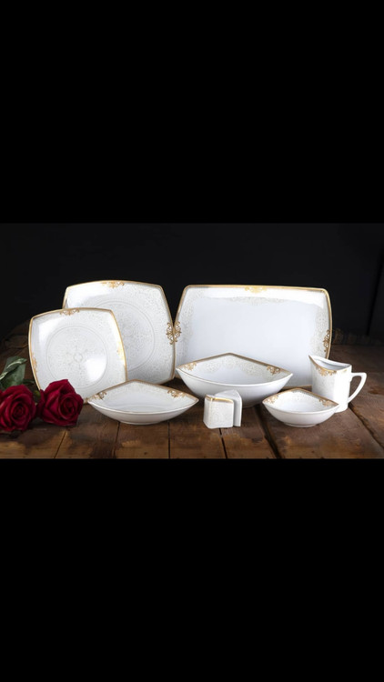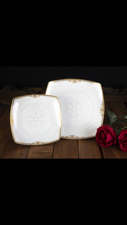 چینی پردیس طرح گل دوزنجیره و رویال ۱۰۵ پارچه طلایی کف گل