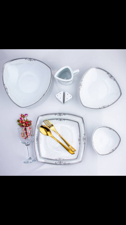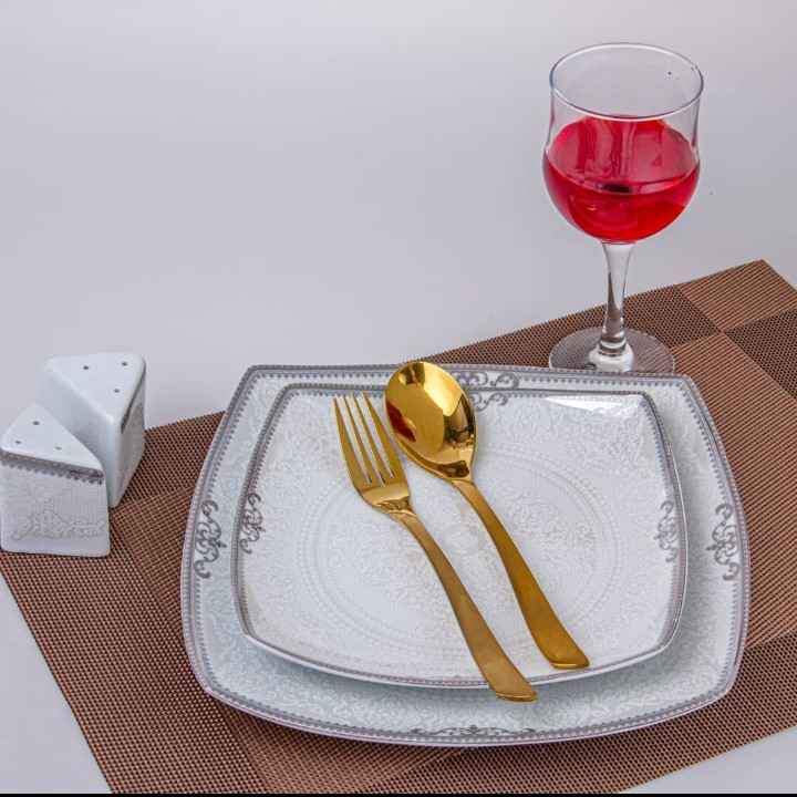 چینی پردیس طرح گل دو زنجیره رویال ۳۰ پارچه طوسی