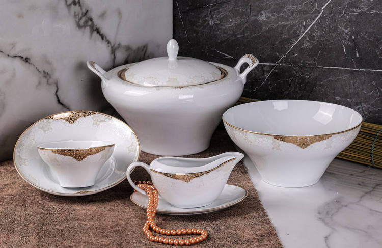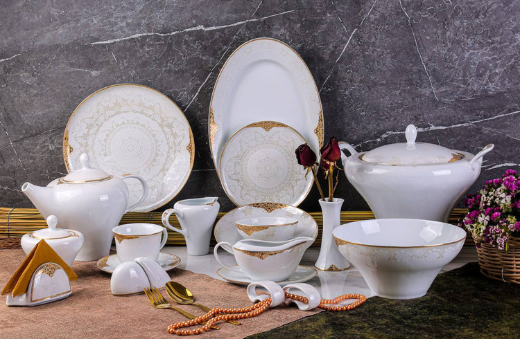 سرویس چینی پردیس طرح سورنتو طلایی 12نفره 104پارچه