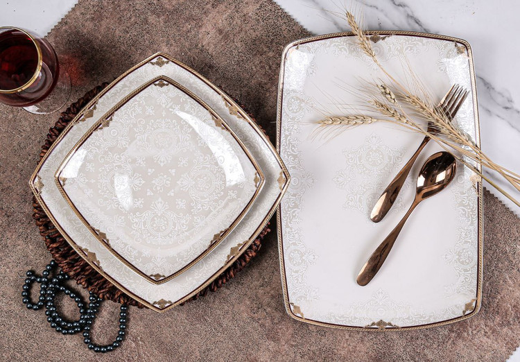 سرویس چینی پردیس طرح الیز 6نفره کف گل استخوانی نیوبن