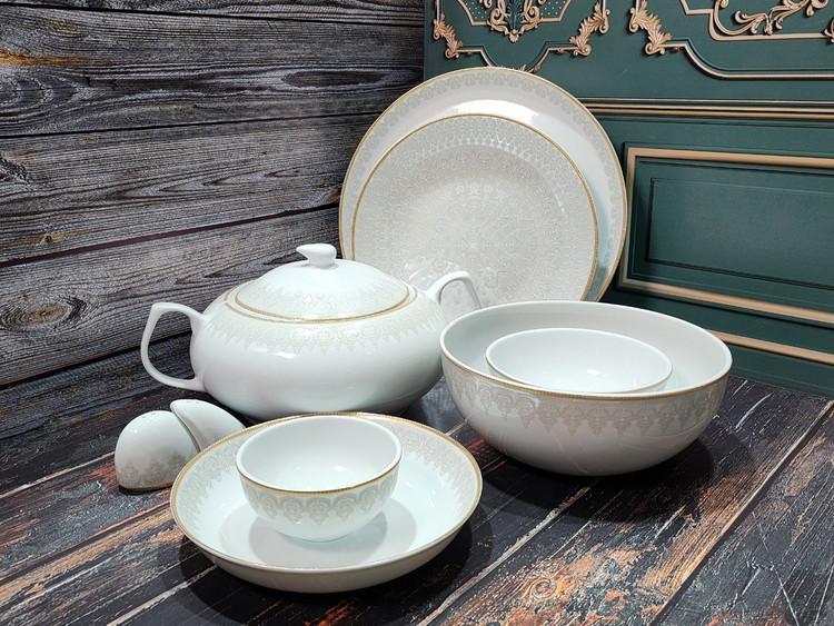 6 عدد پلوخوری 6 عدد خورشت خوری 6 عدد پیش دستی 6 عدد پیاله ماست 2 عدد دیس 1 عدد سس خوری 1 عدد کاسه سالاد 2 عدد نمکدان