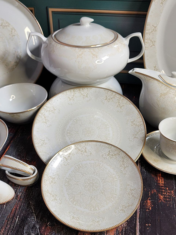 سرویس چینی پردیس طرح کلارا طلایی 6نفره 30پارچه قالب هرمس